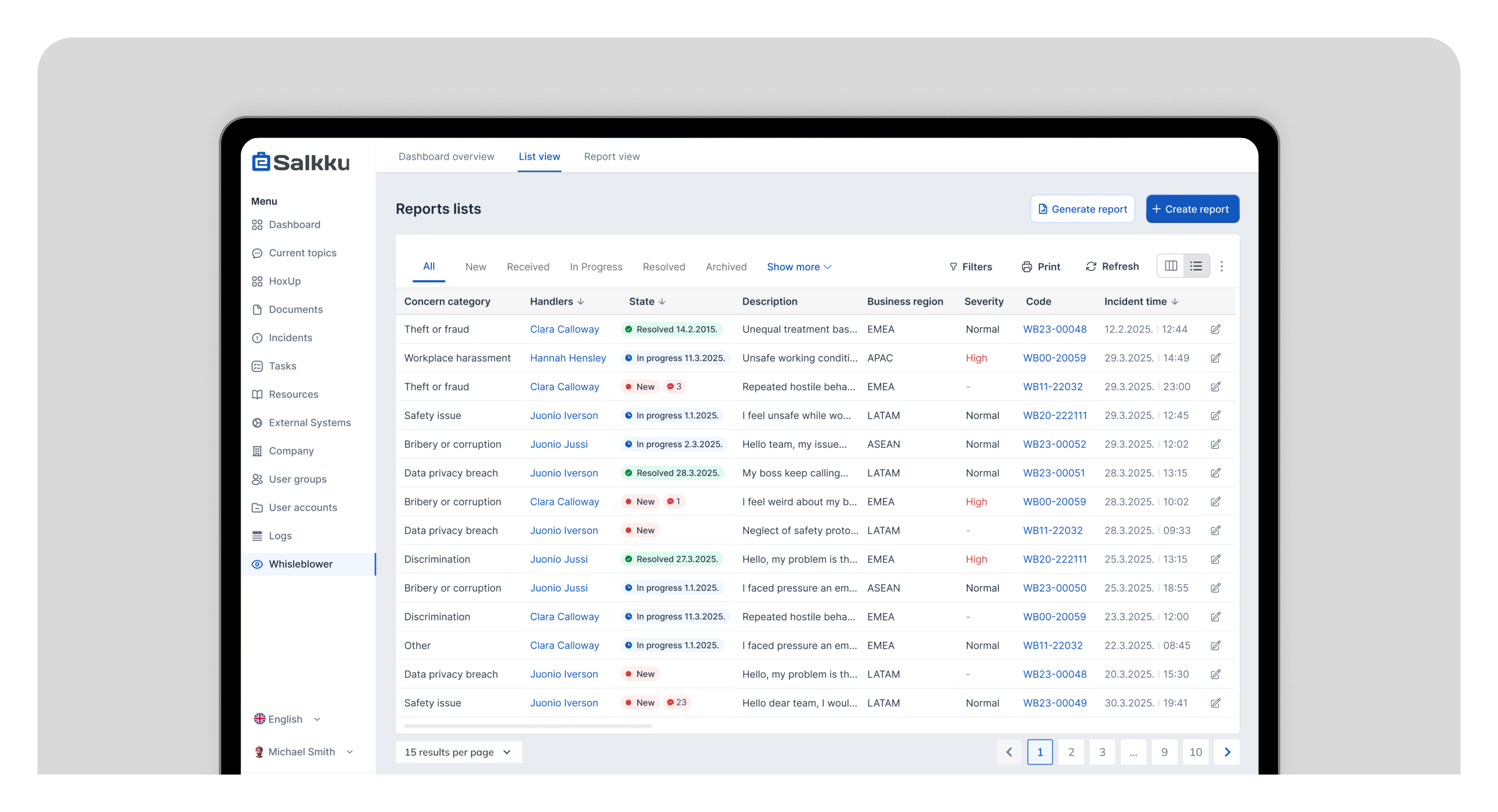 Salkku supports people in high-risk workplace situations, where reporting colleagues requires trust and clarity. By simplifying a complex information architecture, we made it safer and easier to submit and track reports with confidence.